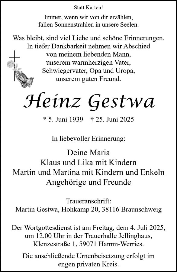 Sprechen Sie im Kondolenzbuch den Hinterbliebenen Ihr Beileid aus und teilen Sie persönliche Gedanken und Erinnerungen mit anderen.